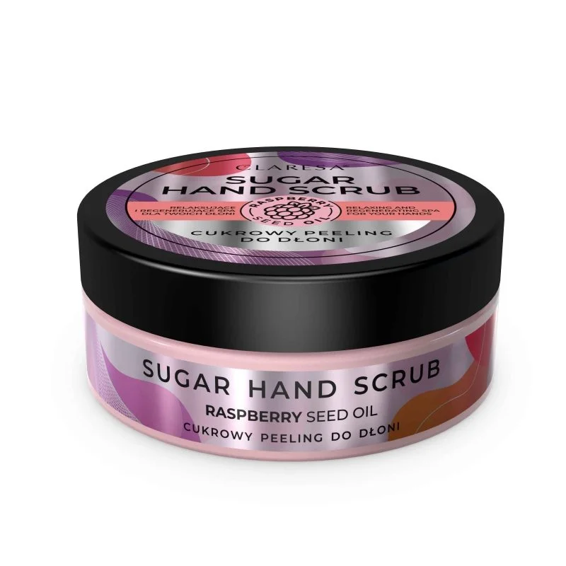 Claresa HAND SUGAR SCRUB Zucker-Handpeeling ist eine wirkstoffreiche Formel, die abgestorbene Hautschüppchen abblättert und die Hände pflegt. Dank des Nutri-Boost-Komplexes glättet das Peeling die Hände, hellt sie auf, spendet Feuchtigkeit und regeneriert die Epidermis. Dank des angenehmen Parfümerieduftes ist die Handpflege unglaublich angenehm und entspannend.