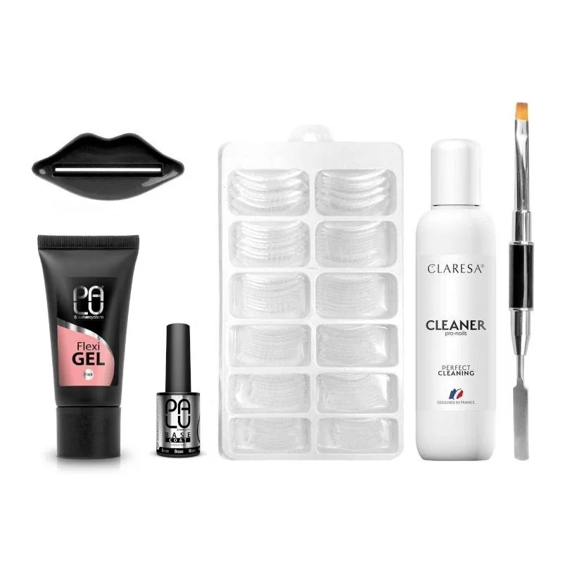 Im Flexi Gel Set finden Sie alles, was Sie zum Verlängern der Nägel mit diese Methode benötigen.